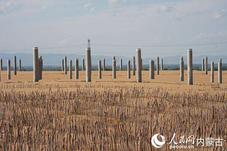基地内的“骏马电站”已成为库布其沙漠治理的标志性符号。人民网 孟佳澍摄