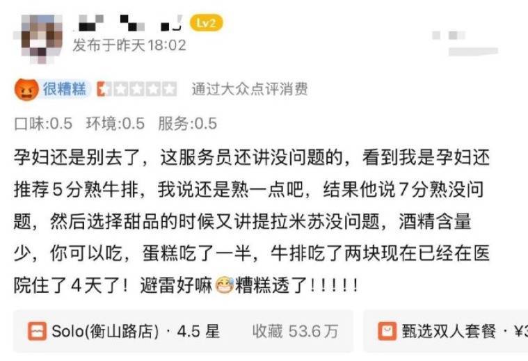 其中还有一名孕妇自称因为吃了该店的牛排,在医院住了四天。
